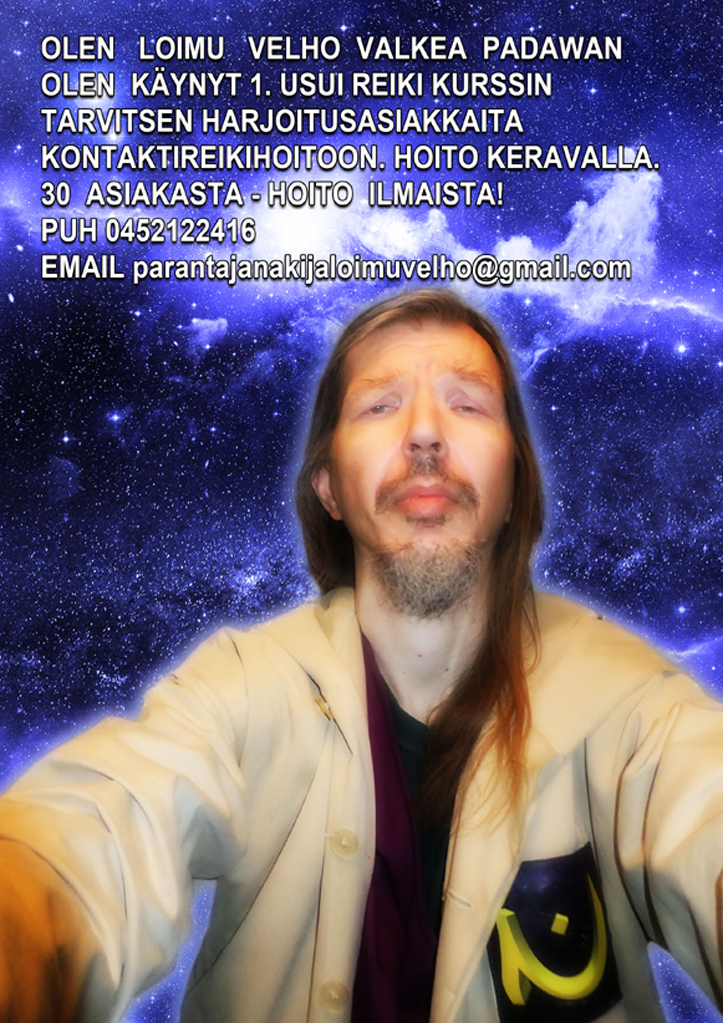 Olen Loimu Valkea Velho Padwan Tarot tulkitsija Padwan Ja Usui Reiki 1 kurssi suorittanut teen harjoitus hoitoja kontakti Reiki hoidossa hoito ilmasta.